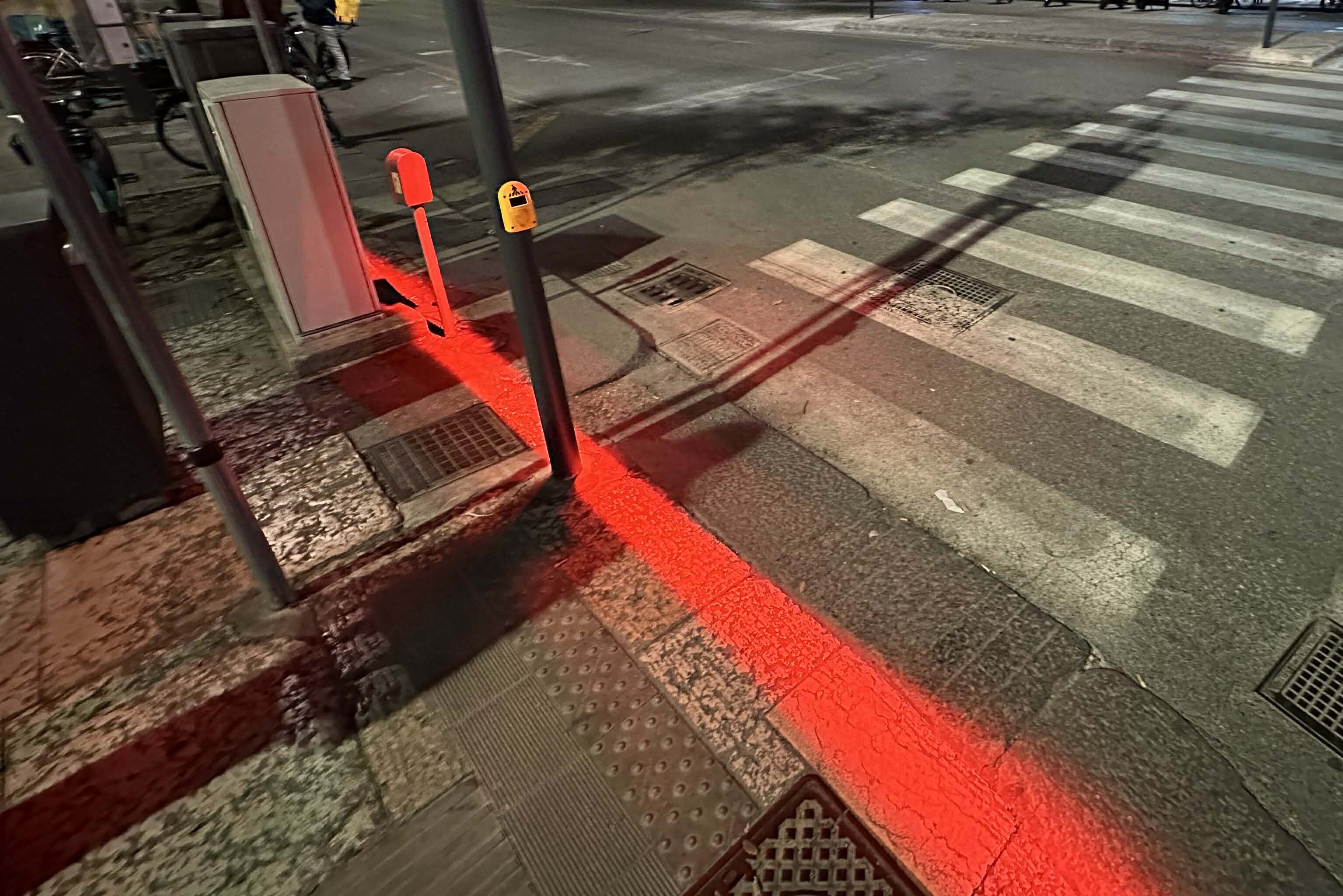 A közlekedési lámpa egyébként nappal is ugyanígy pirosan világít, azonban még felhős fényviszonyok között is nagyon erősen kell figyelni a lábunk elé, ha szeretnénk látni az éjszaka egyértelműen kivehető vörös sávot.